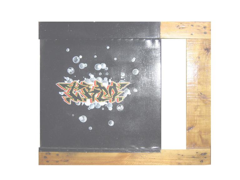 Le support n’est -il pas œuvre ? Seul le travail graphique que l’on y appose dessus doit être valorisable ? La mixité est richesse chaque élément apportant et mettant en valeur l’autre et ses différences. Ici le bois et le vinyle se mixent à la peinture comme « la mixité » permet l’ouverture d'esprit....